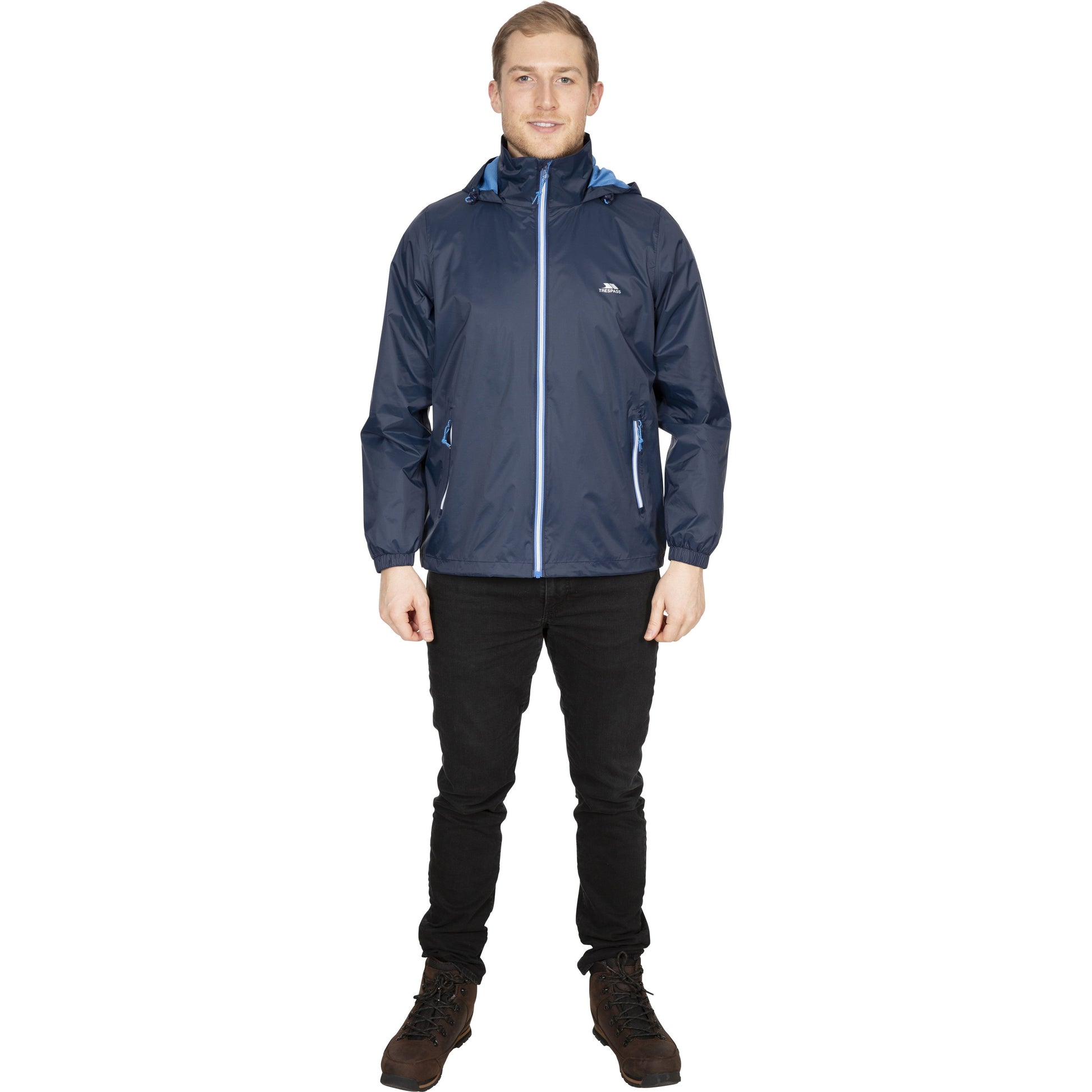 Stay dry and comfortable in any weather with the Briar Men's Unpadded Waterproof Jacket in Navy. Its adjustable hood folds into the collar, while the 2 zipped pockets provide convenient storage. The fully elasticated cuff and taped seams ensure maximum protection, while the contrast stripes and mesh lining add a stylish touch.